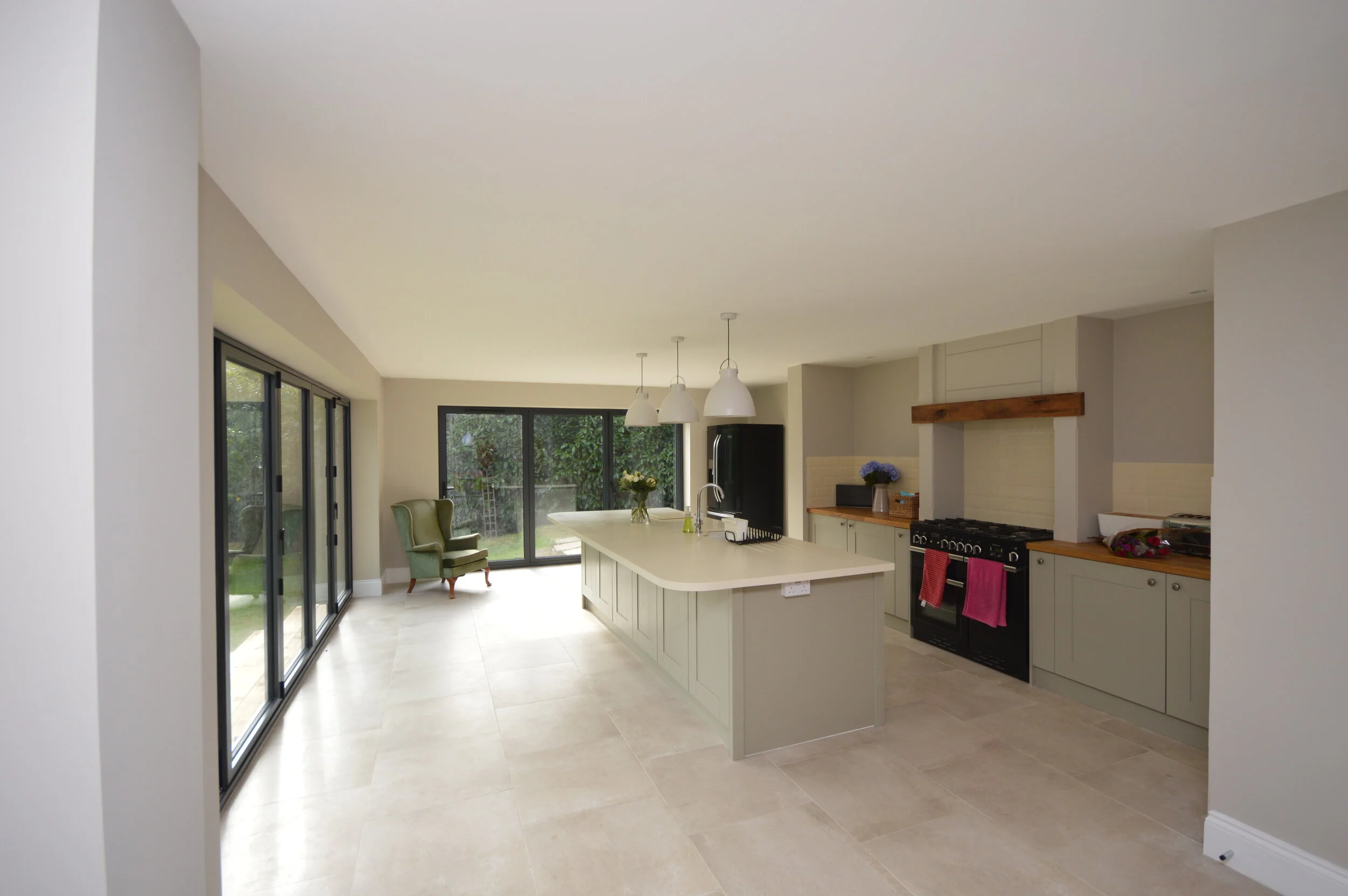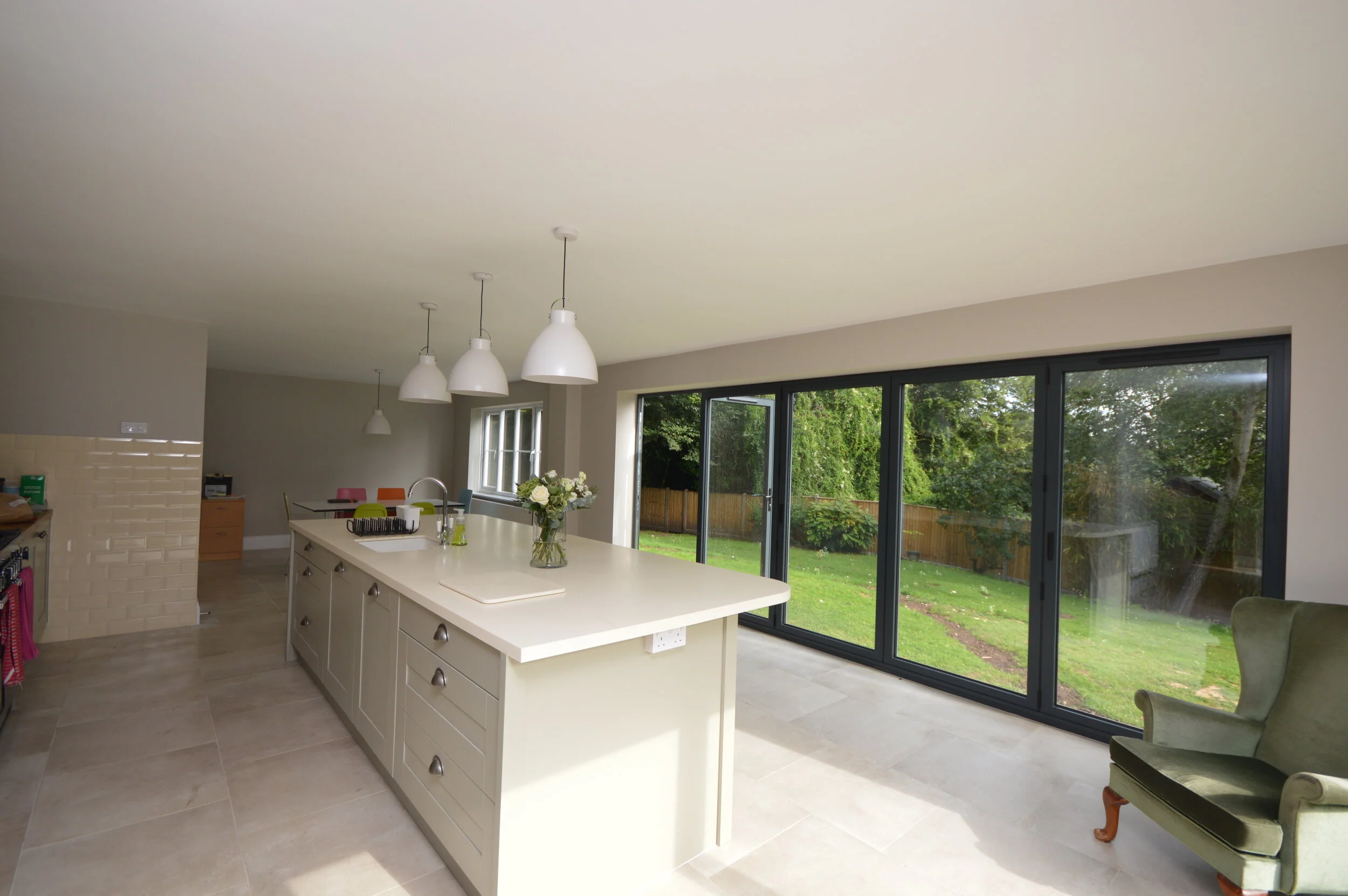 Addition of two sets of bi folding doors to kitchen to allow maximum light and direct access to garden and patio